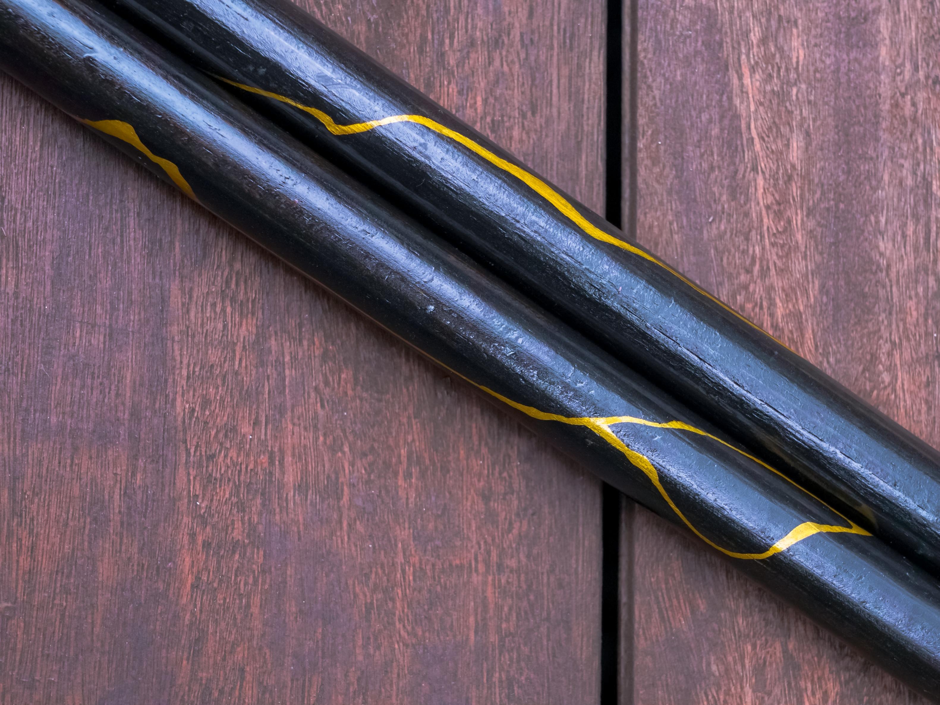 Influenced by the Japanese art form of Kintsugi, where broken ceramics are repaired with lacquer and gold to celebrate their history and imperfections, our first designs apply a similar philosophy to our design process. Each stick we craft carries a subtle touch of gold painting in its design, a nod to Kintsugi’s ethos of finding beauty in flaws and resilience. Just as each repaired piece in Kintsugi tells a unique story of overcoming adversity, our sticks embody the journey of a martial artist—resilient, beautiful, and eternally evolving. This unique design element reinforces our commitment to quality, imbuing each product with a sense of soulfulness and timeless elegance.